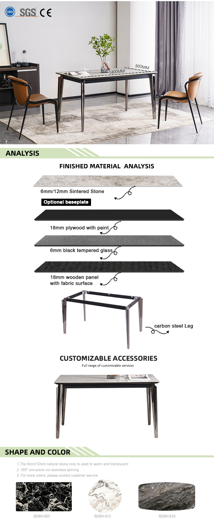 •  Customizable:dinging table,living room table marble table,large table,chair,table leg,table base