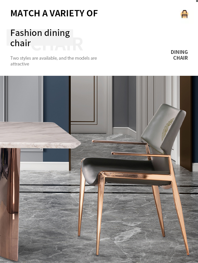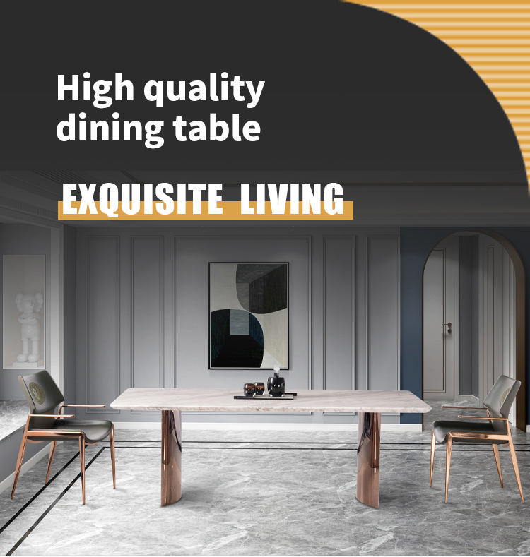 • Rose Gold Assembled Table Base , Sintered Stone Dining Table Top.